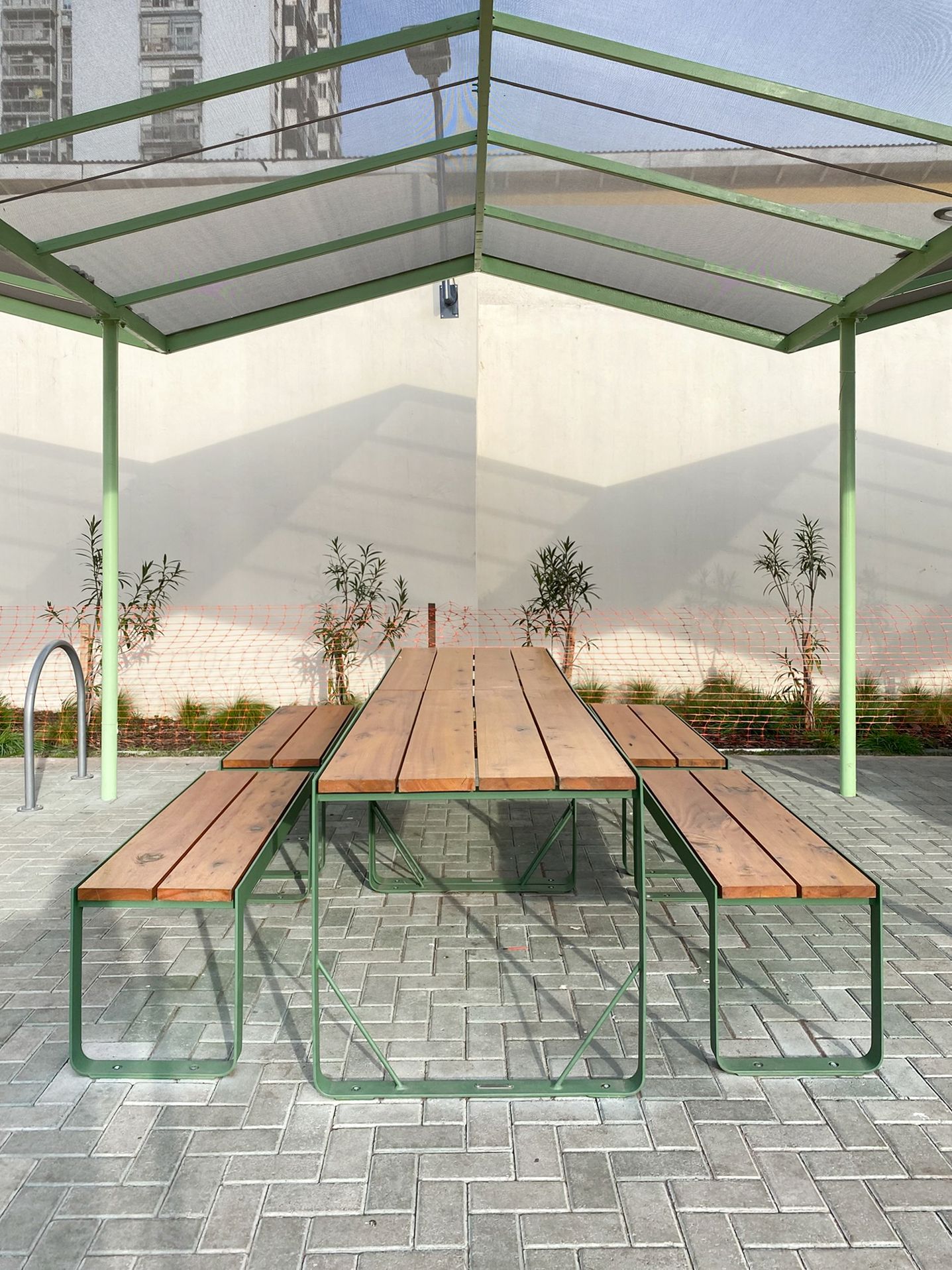 El Conjunto Picnic es la perfecta unión de diseño moderno y durabilidad. Este mobiliario, que incluye una mesa y dos bancos, está ideado para transformar espacios, desde parques y jardines hasta galerías y áreas comerciales. Con una estructura resistente y disponible en una amplia gama de colores, el Conjunto Picnic se adapta a diferentes entornos y estilos. Los tablones de Eucaliptus Grandis aportan una calidez natural que complementa el diseño contemporáneo del conjunto, creando un ambiente acogedor y estilizado. Disponible en cuatro medidas, el Conjunto Picnic está diseñado para maximizar el uso de cualquier área, invitando a compartir momentos y disfrutar del entorno.